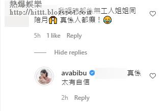 雨僑另在post中透露,自己坐月期間,有好好調理身體,但笑言所經歷的事,有「10匹布咁長」!而身為過來人的靚媽謝安琪,就留言為雨僑加油,希望真的可以為雨僑打打氣。
