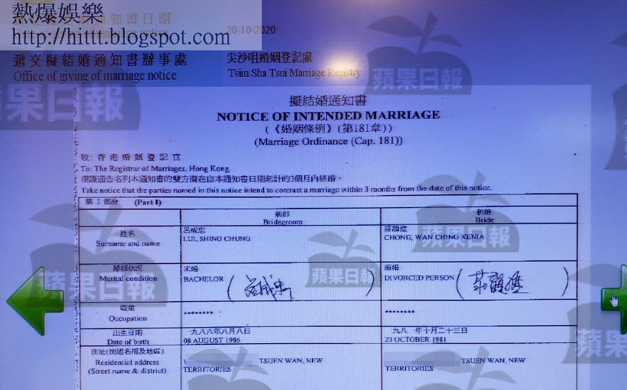 莊韻澄(前名莊端兒)上周六(24號)高調晒1卡鑽戒宣佈拍拖,《蘋果》發現她原來10月20號已入紙註冊,見39歲莊韻澄跟34歲呂成忠(Joe)準備拉埋天窗;而32歲巨聲幫出身的羅孝勇(Sheldon)與31歲的模媽王丹妮(Louise)都入紙註冊,雖然Louise育有6歲大的女兒Affa,羅孝勇亦不介意當後父,娛圈喜事浪接浪。