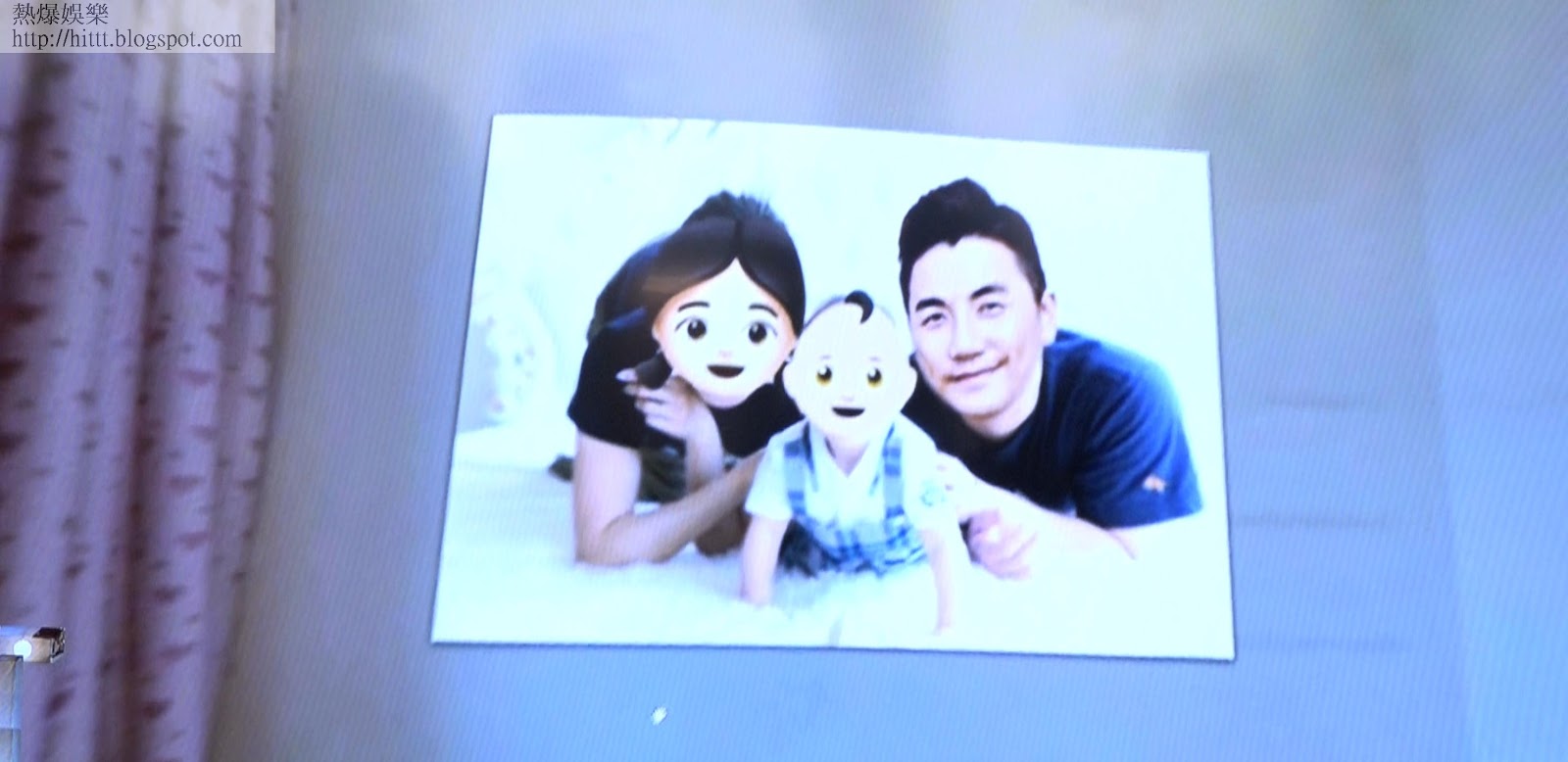 洪永城笑言覺得對大會這張「偽造」的一家三口合照有點恐怖。(蘋果日報)