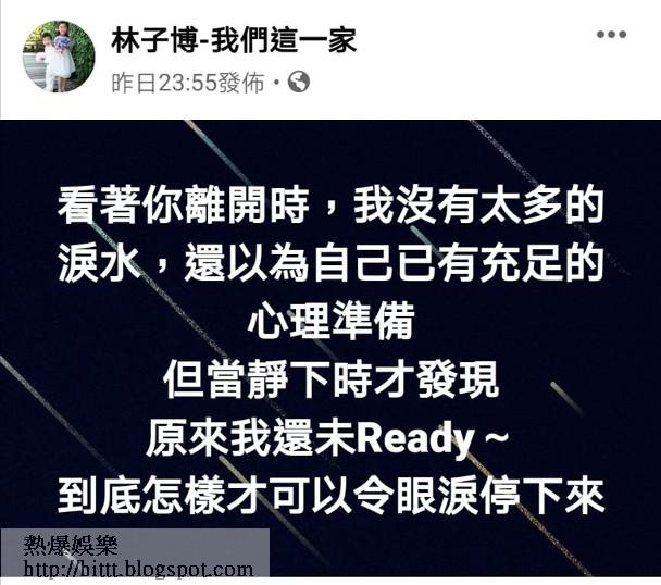 雖然太太已經患病一段時間,林子博早已有心理準備,但當事情真的發生,也難以接受事實,林子博於凌晨時份再在網上表達失去太太的哀傷,能看出他夜難眠,寫道:「看着你離開時,我沒有太多的淚水,還以為自己已有充足的心理準備,但當靜下時才發現,原來我還未Ready~到底怎樣才可以令眼淚停下來。」聞者心酸