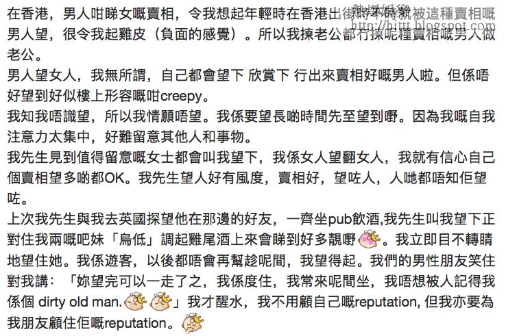 真係極不尊重另一半同對其他女性太無禮。我自己見到靚女靚仔有時都會望吓,但唔會望到出神囉!
