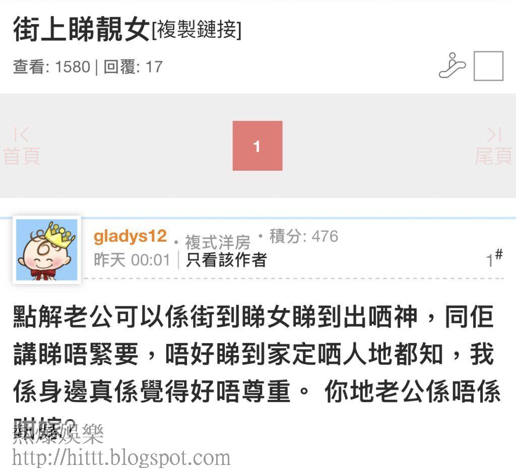 早前有女網友在論壇發表一個「街上睇靚女」的發文,指丈夫喜愛在街上望靚女,令她心感不滿:點解老公可以係街到睇女睇到出哂神,同佢講睇唔緊要,唔好睇到家定哂人地都知,我係身邊真係覺得好唔尊重。 你地老公係唔係咁嫁?