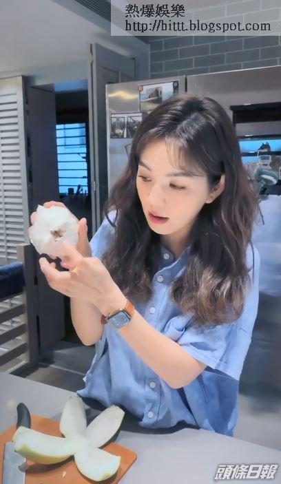 Ella好有心拍埋片,先用刀切開碌柚,然後用力搣啲肉出嚟,之後就係牙線出場,用牙線棒嘅尾部輕輕鎅開啲肉,話咁快肉同皮就分離,全程分半鐘,乾手淨腳。