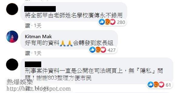 不過,麥潔文卻留言力撐,以簡體字寫道:「好有用的資料,會轉發到家長組。」她公然助長篤灰的留言,獲得逾200個「嬲嬲」。