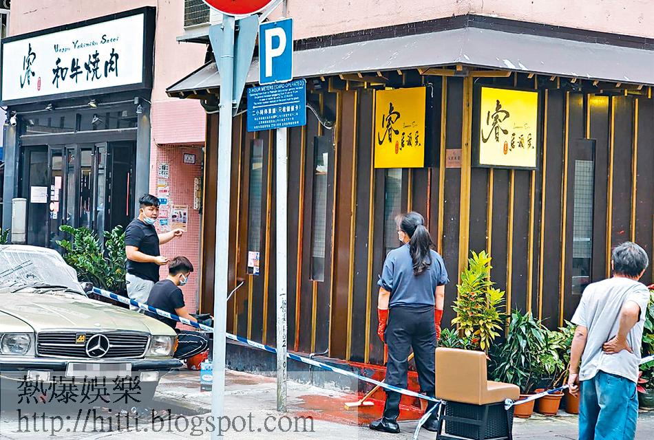 記者在麥包的和牛專門店外視察,見店內有三名職員以天拿水清潔門口的紅油,但當記者問到事發經過,及老闆麥包和老闆娘會否稍後返回店舖,他們顯得十分避忌,只回答:「唔清楚。」然後急步返回店內,並拉上大閘,閘上大片紅油污迹仍清晰可見。麥包昨日以短訊回覆,指不清楚發生甚麼事,他說:「多謝關心,唔知咩事,拍檔已經報警,交由警方處理。」有指大坑另外兩間被淋紅油的日式食肆,麥包都有份投資,但他否認。問他是否擔心及有沒有跟人結怨,以及會否回舖頭了解一下時,他說:「我今日另有工作,所以不回舖頭。不猜測,交警方處理。」