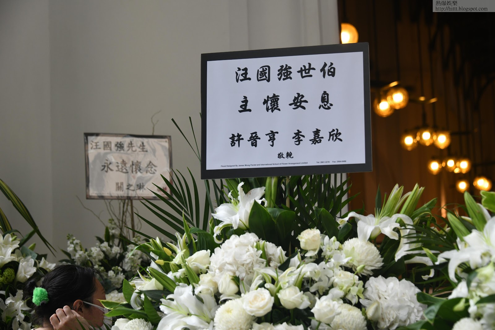 遺照選用汪父身穿西裝配煲呔、面帶微笑的照片,教堂內左方放有投影器,播放汪父生前的相片及片段,現場亦派發了安息禮拜小冊子,當中寫下兩姊妹對父親的懷念,以及汪太娘家對女婿的思念,而詩詩、圓圓、甄濟如、甄子丹亦在儀式內分享悼詞,並有詩班獻唱。