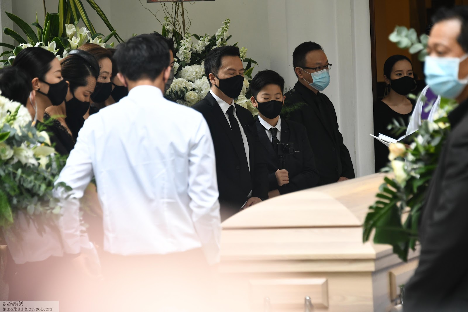 所有儀式於下午3點完成,靈柩先推出教堂並移送上靈車,子丹細仔手捧外公遺照步出,之後眾家人站到門外送客,親友也送上慰問與擁抱,情境傷感。琦琦離開時仍在痛哭,圓圓與孫女Jasmine也哭成淚人,而陳可辛與太太吳君如隨後亦從教堂步出,向詩詩和子丹送上慰問,送走眾親友後,汪媽媽由兩女伴同到外面小花園看花牌,之後離開。