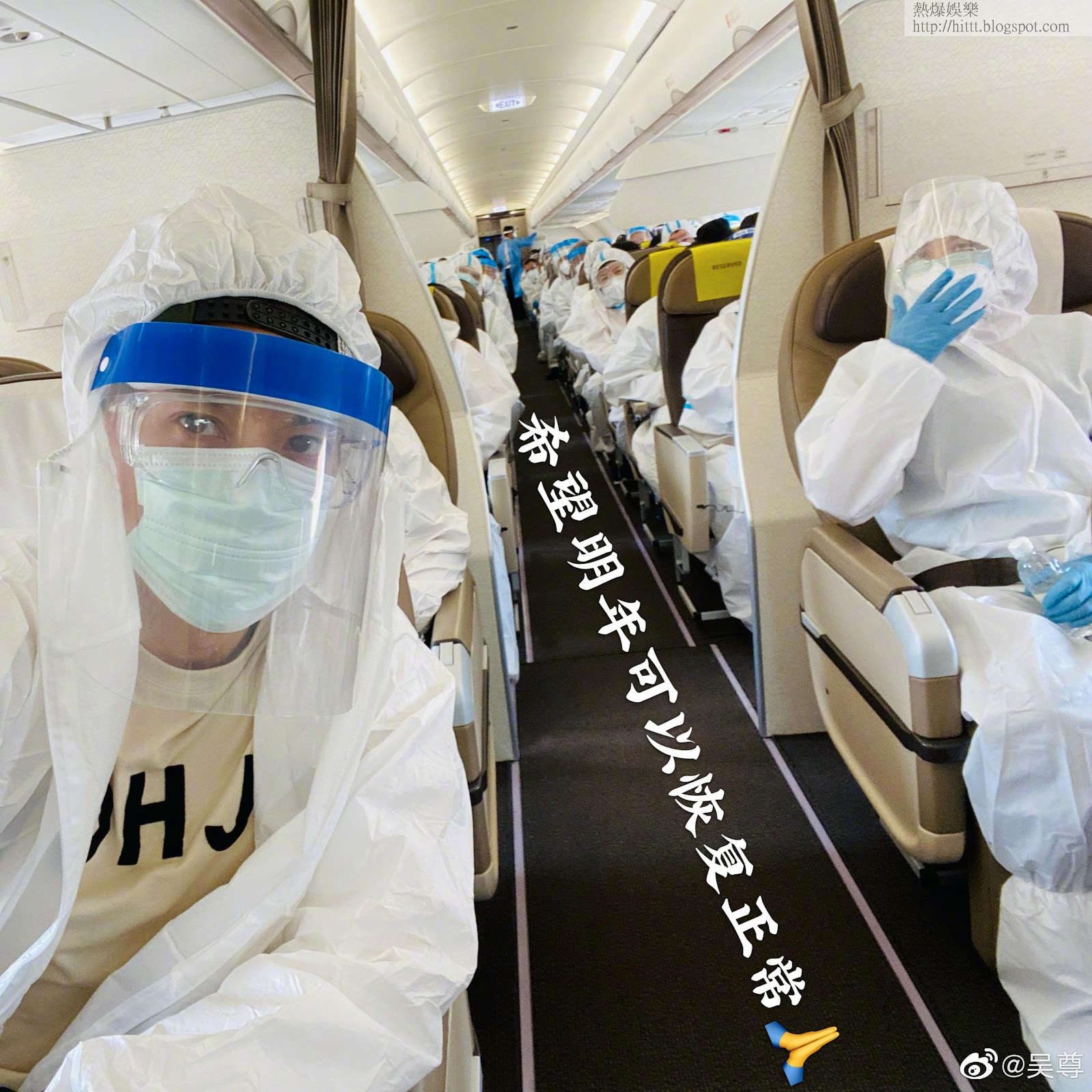 疑因穿上保護衣太熱,吳尊沒有完全拉上拉鍊,露出心口位置透透氣,但他在機場時,加戴了防護目鏡,不敢鬆懈。吳尊上機後,再拍了一張幾乎全機乘客都穿上保護衣的照片,他留言說:「希望明年可以恢復正常。」