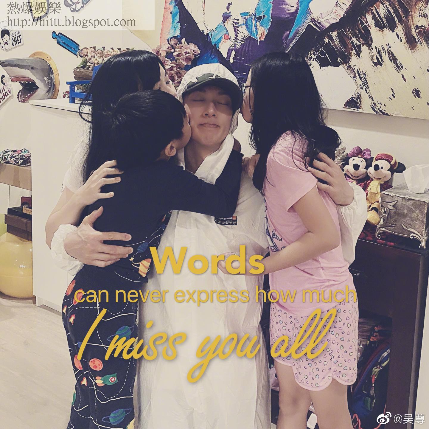 吳尊更提到今次出埠的時間比較長,或許這個原因,吳尊的太太林麗瑩及一對子女攬實這名好爸爸,齊齊獻吻,吳尊閉眼十分享受,另有一張吳尊與父親的合照,吳父特地去送機,相信也是因為捨不得兒子。吳尊提到:「很久沒離開家人這麼久了,這是最捨不得的!加油吧!」