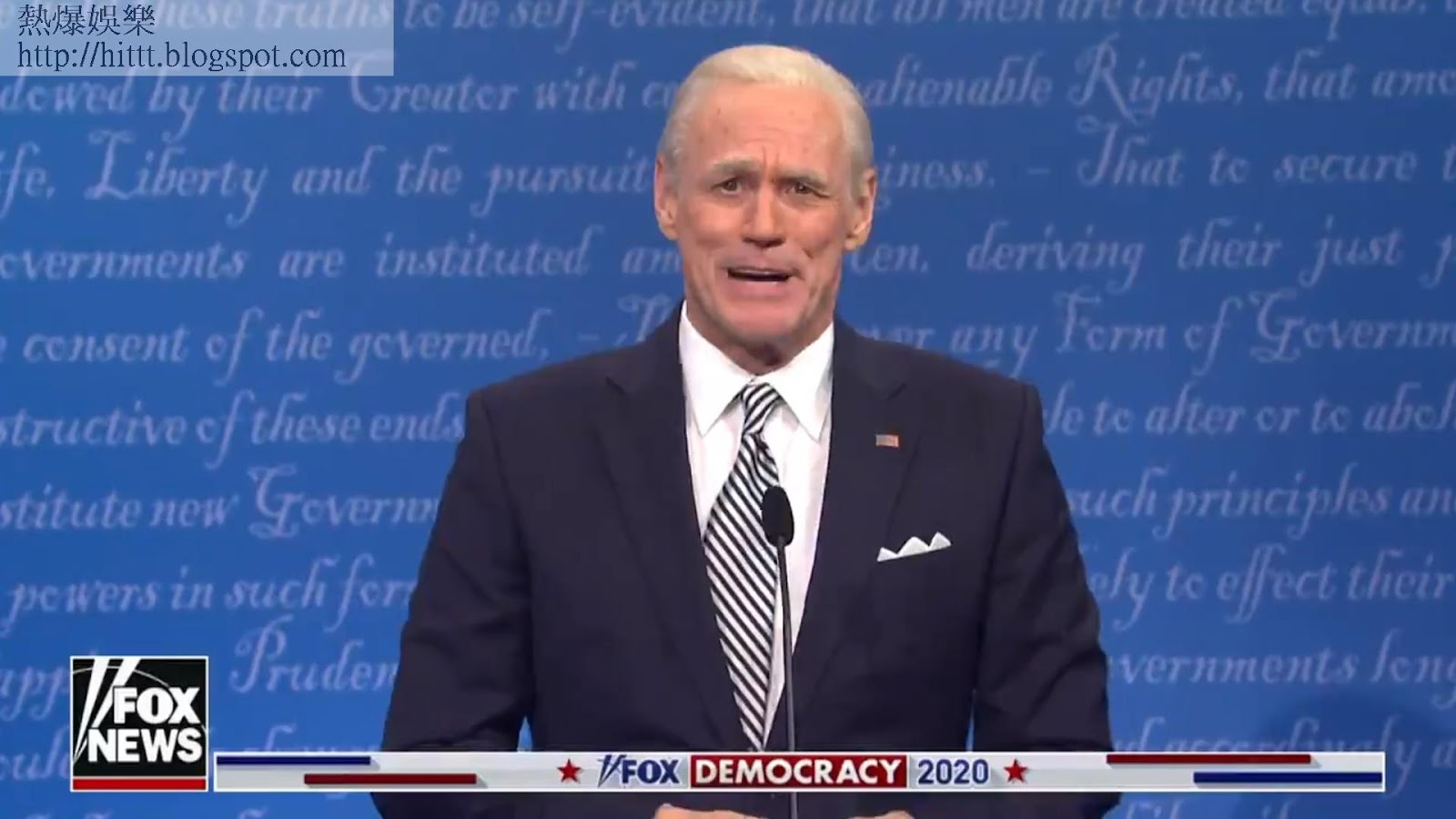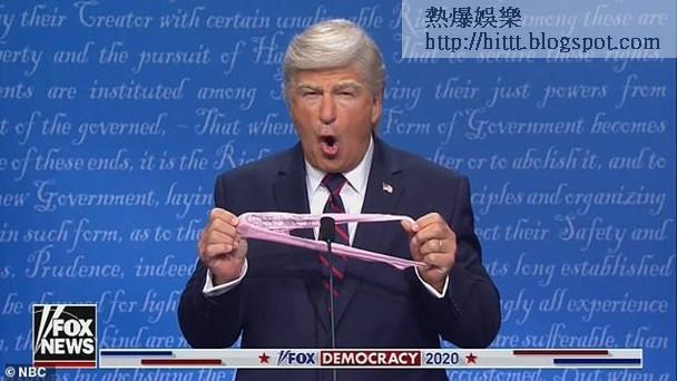 節目中首先見到「特朗普」艾力寶雲瘋狂發言,之後就到戴上黑超的「拜登」占基利出場。他一現身就以尺量度與特朗普的距離,又搬出扮演候選副總統賀錦麗(Kamala Harris)的Maya Rudolph,發表女權言論。最終Harry Styles更客串登場,扮演冥想導師。