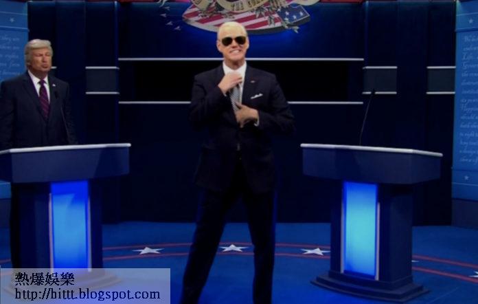 節目中首先見到「特朗普」艾力寶雲瘋狂發言,之後就到戴上黑超的「拜登」占基利出場。他一現身就以尺量度與特朗普的距離,又搬出扮演候選副總統賀錦麗(Kamala Harris)的Maya Rudolph,發表女權言論。最終Harry Styles更客串登場,扮演冥想導師。