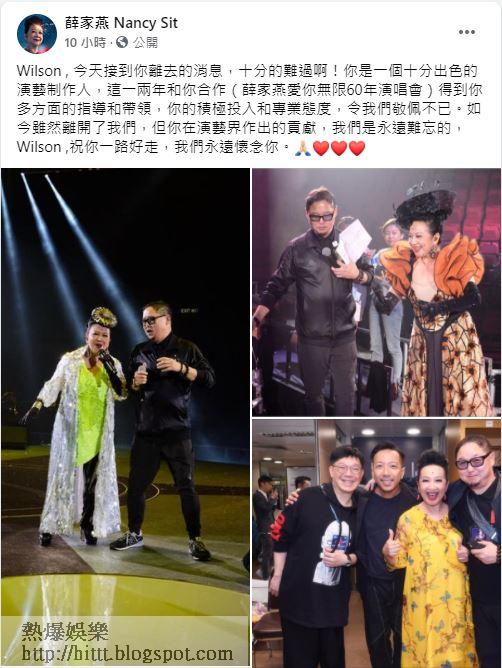 孫慧雪亦在社交平台留言:「Wilson,你喺上幾星期同我講,話好開心見到我今日發展得好好!但我想講,您係我一定要多謝嘅人,到咗今日,大家都會記得我做《美女廚房》嘅阿飯、同《志雲飯局》嘅女助手,都係因為您!多謝您畀機會我!無您絕對無今日嘅我!仲記得,最後一次見到你,你好開心話自己同太太生咗位小天使!估唔到今日你就走咗,呢個消息真係好難接受,一路好走!希望您家人會勇敢堅強面對!」