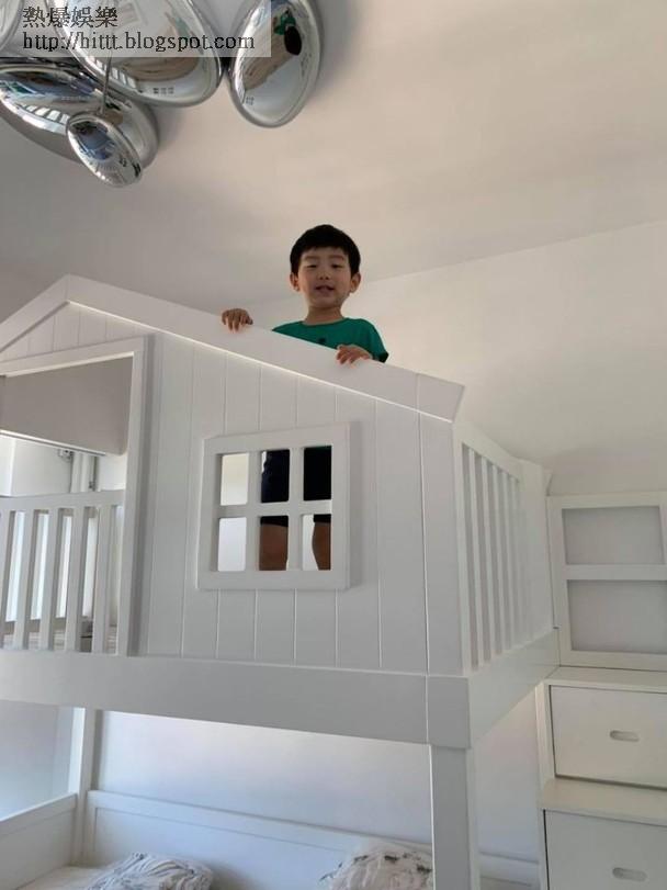 除咗多玩具,仔仔張床都好架勢,翠翠一向稱呼三個小朋友做「王子」,咁做得王子就梗係有童話故事中嘅享受樓底十幾呎,翠翠特意為佢哋訂製屋形雙層床,仲搬埋個宇宙返屋企,仔仔抬頭就見到星空,網民都話好羨慕佢哋有個幸福嘅童年呀!
