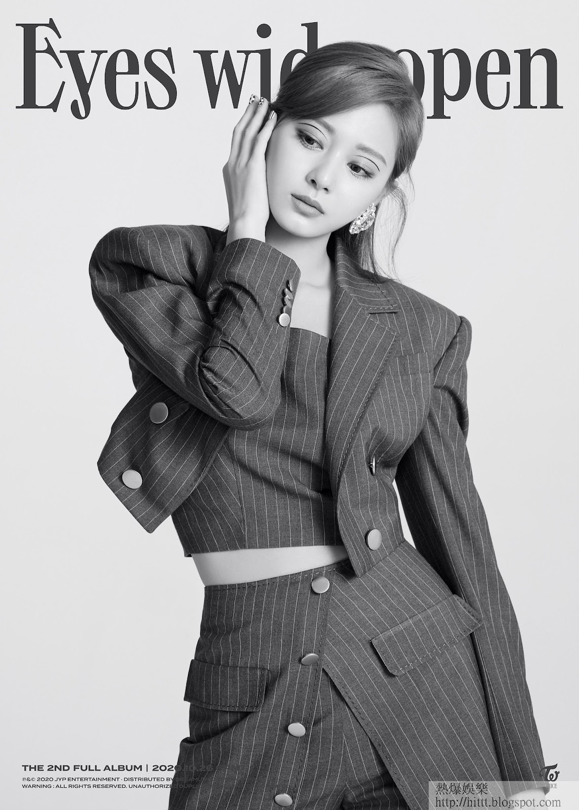 另外,女團TWICE亦即將攜新碟《Eyes wide open》回歸樂壇,組合所屬的JYP事務所早前公開了9位成員的預告相,只見今次組合以成熟風格示人,跟以往的甜美風格顯得十分不一樣。而JYP今日亦公開了台灣成員周子瑜的新相,只見她穿上平胸黑色連身長裙出鏡,大騷香肩散發女人味,而另一張相中就以特別的眼妝示人,引起熱議。