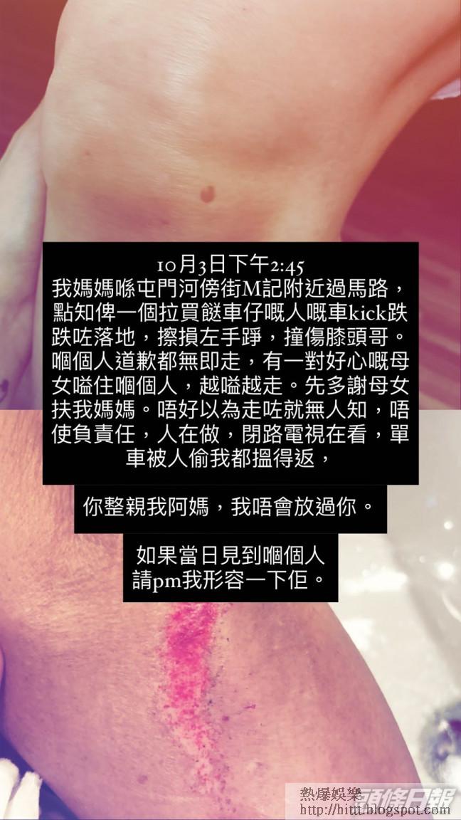 阿媽出街被人撞跌落地受傷 陳健安IG尋人:「我唔會放過你」