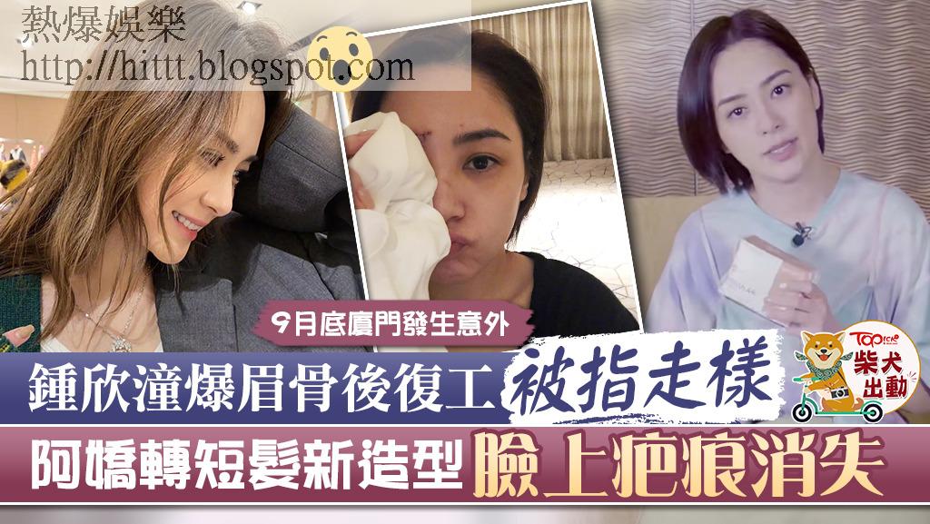 今年9月底,阿嬌鍾欣潼往廈門拍戲,因為於酒店不慎撞傷致爆眉骨,傷口長達6cm,阿嬌慘被破相,需縫上數百針,當時的疤痕清晰可見,同時鍾欣潼亦接受整形外科手術。