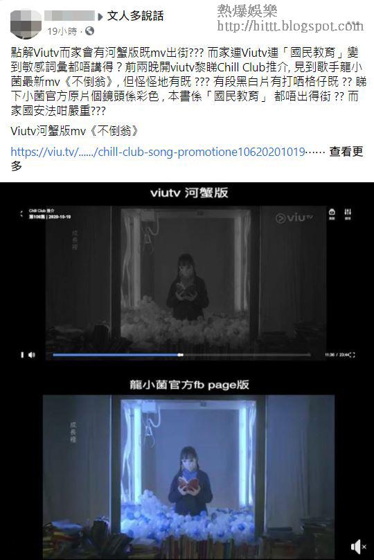 《蘋果》今日致電ViuTV了解事件,ViuTV回覆:「謝謝查詢。龍小菌主唱的歌曲《不倒翁》MV是由帶菌者提供予ViuTV,ViuTV播出該MV前未有作出任何修改。」