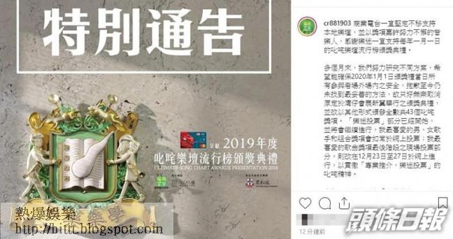 群星影「十大中文金曲」宣傳相 2020叱咤搞實體頒獎禮不設觀眾