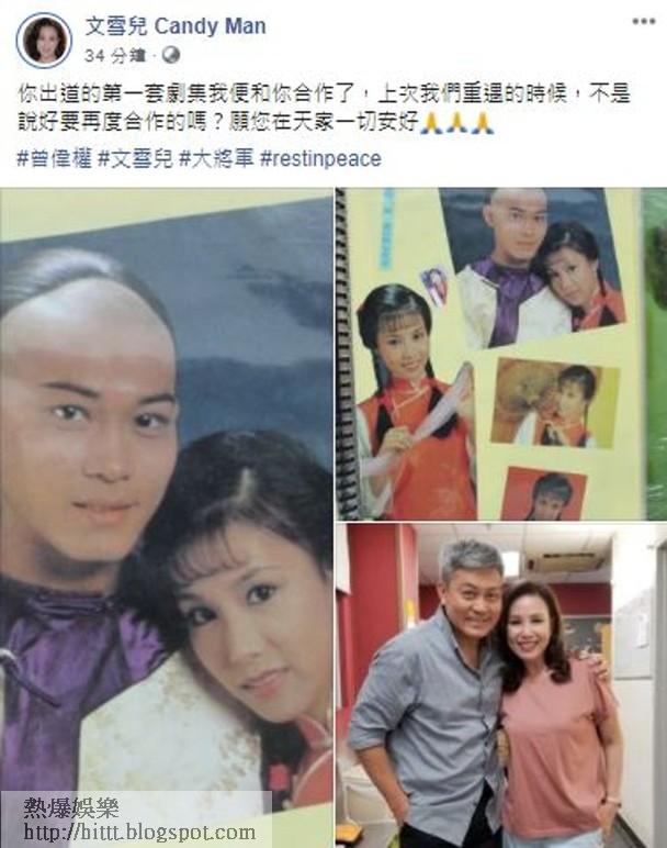 59歲藝人曾偉權於今年初被指患上肺癌,11月22日就60歲的他今日傳出死訊,他出道後便與文雪兒合作,文雪兒於社交網證實他離世消息,寫道:「你出道的第一套劇集,我便和你合作,上次我們重遇的時候,不是說好要再度合作的嗎?願您在天家一切安好!」並附上合十emoji及昔日二人的劇照,而導演賴水清指朋友獲曾偉權契妹Sasa通知曾偉權昨晚離世的消息。