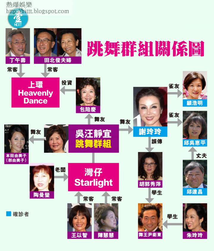 跳舞跳出火,更跳出病禍。震驚富豪圈的闊太跳舞群組,打開了香港第四波疫情。由建生國際集團主席吳汪靜宜在出席灣仔Starlight Dance Club的活動後確診武漢肺炎,至幾個闊太名媛如林建岳前妻謝玲玲,遠東發展主席兼行政總裁邱達昌與妻子邱吳惠平,以及高盛(亞洲)私人財富管理業務董事總經理顧浩明(Helena Koo)相繼證實染疫。豪花過億跳舞的闊太,現時有的紆尊降貴入住政府醫院,有的由半山走入元朗趕檢疫,非常狼狽。