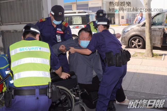 秦煌需由4名保安扶上輪椅。