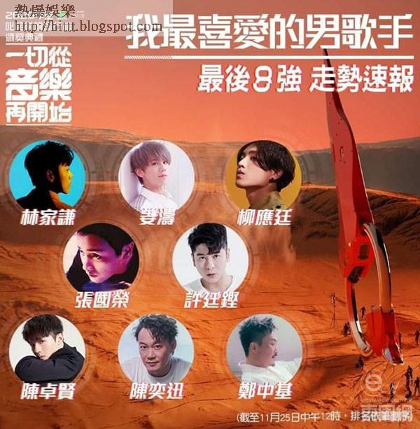 至於「我最喜愛的女歌手」最後7強有AGA、Gin Lee、Serrini、方皓玟、林二汶、衛蘭、謝安琪;而「我最喜愛的組合」最後7強則有Dear Jane、Dusty Bottle、ERROR、ILUB 艾粒、MIRROR、RubberBand及小塵埃。