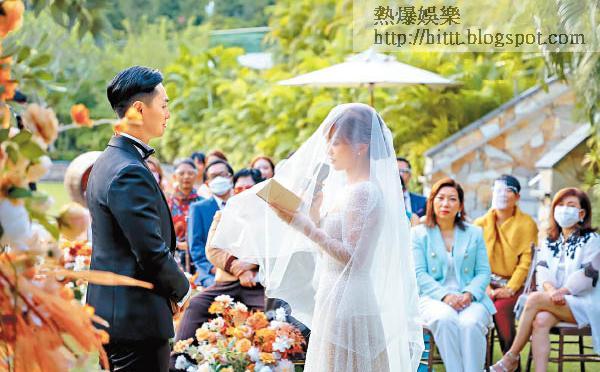 受禁聚令限制下,他們僅邀約50名親友出席婚禮,包括無綫高層樂易玲、唱片公司老闆何哲圖、譚嘉儀、胡鴻鈞等,何哲圖表示:「聽到佢哋講好艱難先行到呢一步,好感動!」穿低胸婚紗的阿詩挽着父親手臂進場,一對新人交換戒指後深情擁吻,之後輪流發表誓詞,期間阿詩獻唱情歌,場面感人,二人都有眼濕濕。接着他們在律師及雙方家人見證下簽字,晚上就移師大埔一間西餐廳舉行約70人的私人晚宴派對。