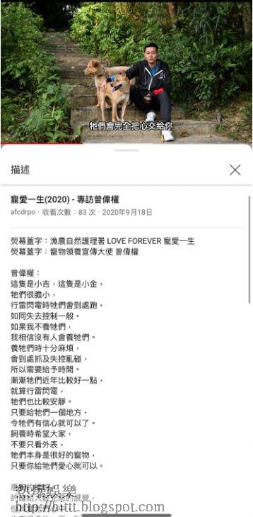 早前曾偉權擔任寵物領養宣傳大使,帶同兩隻愛犬小吉和小甘一齊為漁農自然護理署(漁護處)拍攝宣傳片,並於今年9月上載到YouTube。當時的曾偉權明顯消瘦,訪問時聲音亦略帶沙聲,但精神不俗,網民估計是去年底拍攝,《蘋果》亦有向漁護處查詢,但暫未獲回覆。片段中,曾偉權與兩隻愛犬有好多互動,拖着牠們行入草叢,又錫錫愛犬,但幸福背後,曾偉權坦言唐狗一直好少人領養,直言:「小吉小甘好驚青,行雷閃電會周圍走,如我唔領養佢哋,應該冇人領養,因為養佢哋好麻煩,有時會周圍抓嘢周圍搞,會失控,要畀多啲時間,漸漸呢幾年好啲,畀個地方佢覺得有信心就OK。」
