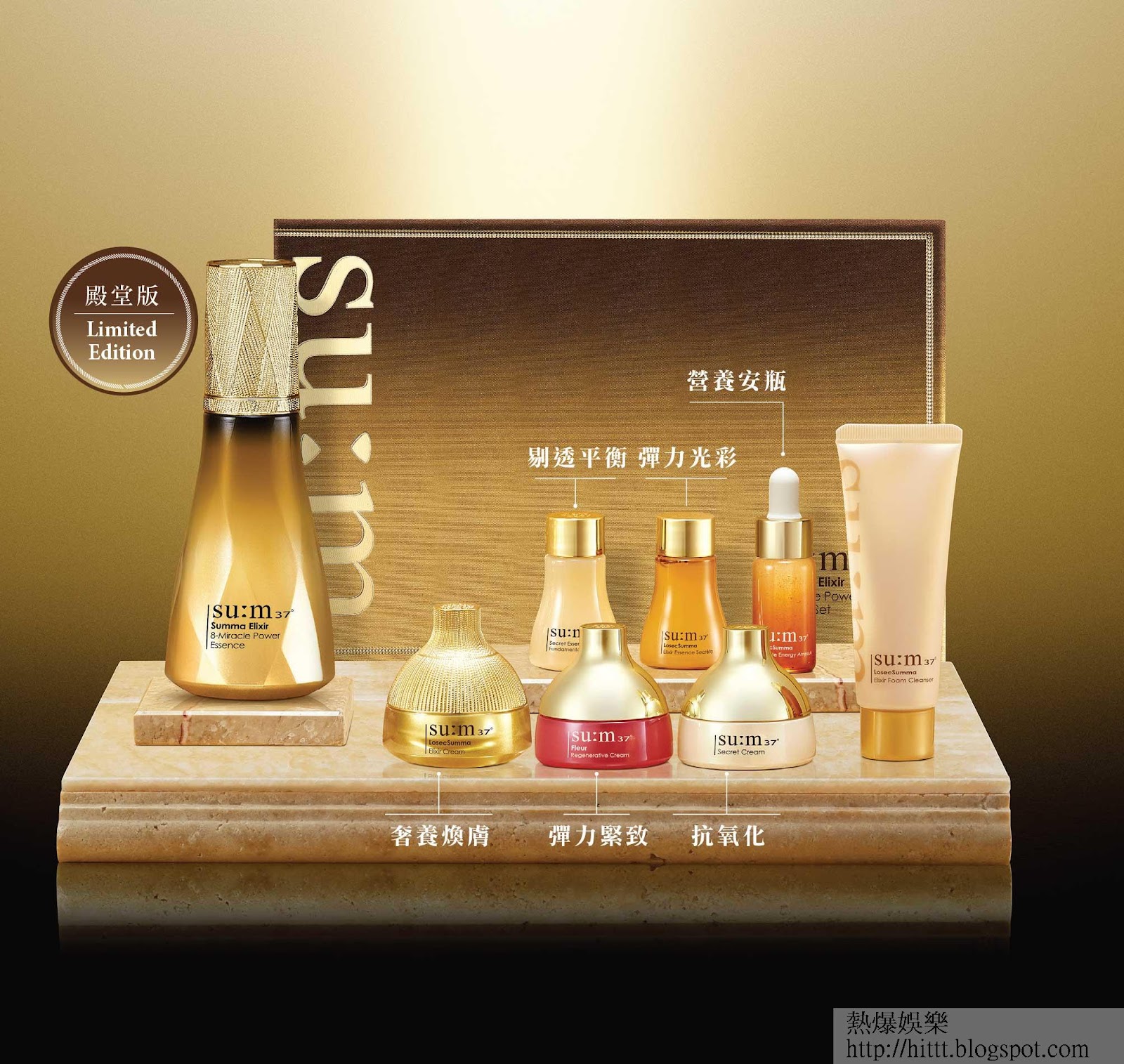 由女神全智賢代言的韓國護膚品牌su:m37°早前推出了全新8重全效活酵能量精華,自然發酵科學打造出的Miracle 8 Repair TM精華成分,包含收細毛孔、減淡皺紋及美白亮膚等8大功效。新產品登場通常冇set賣,品牌卻特別推出限量殿堂版套裝,包括多款精華和面霜,雖然稍微over budget,但套裝夠豐富,齊晒新舊皇牌產品,絕對抵買。