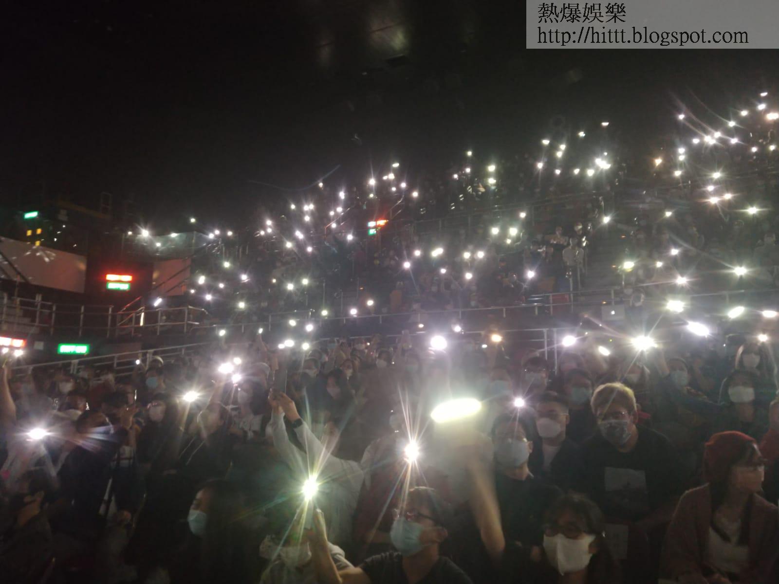 唱到《你情我願》時,由於原裝歌曲最後是混入英國國歌,唱完明哥就指這首歌「好笑也好苦」:「有英國國歌喺入面,如果而家加中國國歌大家可能比人拉。」此時有觀眾笑,而明哥即提醒大家:「你哋笑都可能俾人拉!1990年英國考慮畀居英權我哋,搞到而家先畀,歌背後係話好諷刺,養母唔理我哋,生母唔知想點對我哋,大家而家有啲想走、有啲又走唔到,我哋可以唔使走,因為呢個係我哋地方,而家聽番再有感覺,以前殖民對我哋唔係幾好,但生母當我哋係殖民,好悲涼。」到唱《愛彌留》前,明哥講到副歌部份,是要將夢想變成行動,而唱到該部份時,明哥又再忍不住喊起來,觀眾即時大叫「我哋支持你」,但之後明哥再唱到副歌時再一次喊的他,要擰轉身抹眼淚。