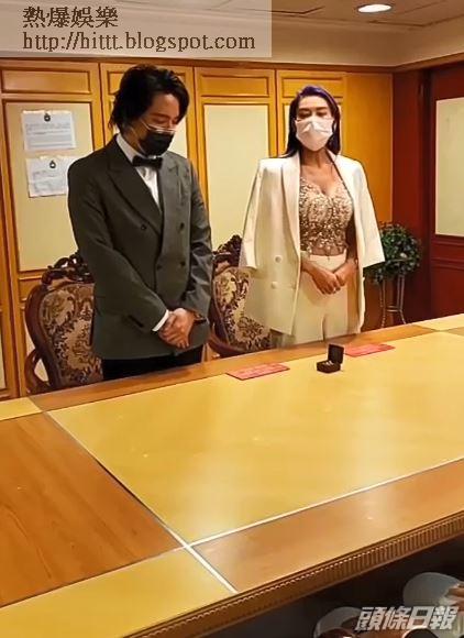 一對新人一切從簡,雖然Xenia今日並沒穿上婚紗,不過依然穿上超低胸閃片上衣襯白色西裝,盛裝現身,不失性感本色。在簽紙儀式上,Xenia和老公在宣讀誓詞和交換戒指期間均有戴上口罩,她亦表現鎮定,新城DJ林柏希都有出席簽紙儀式祝賀Xenia。