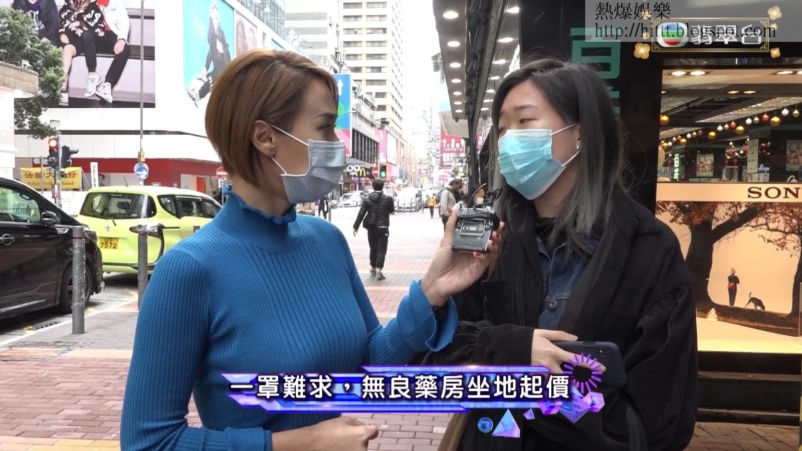 大家李旻芳1月時報道香港口罩供應短缺情況,更「扑咪」做了不少街坊。(電視畫面)
