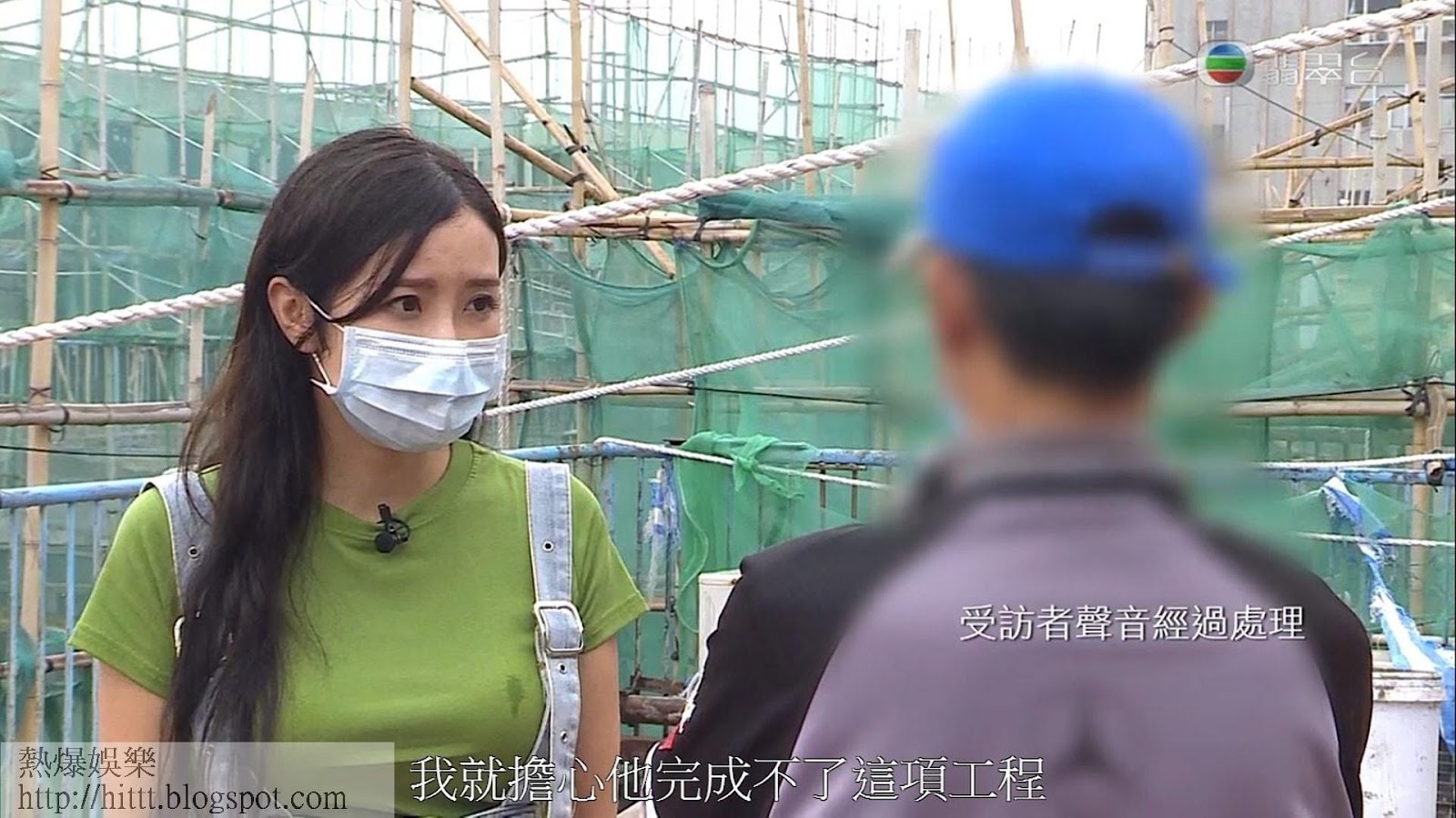 又係利穎怡!今年年中採訪荃灣工廈維修工程爛尾事件的畫面成為網民熱話。(電視畫面)
