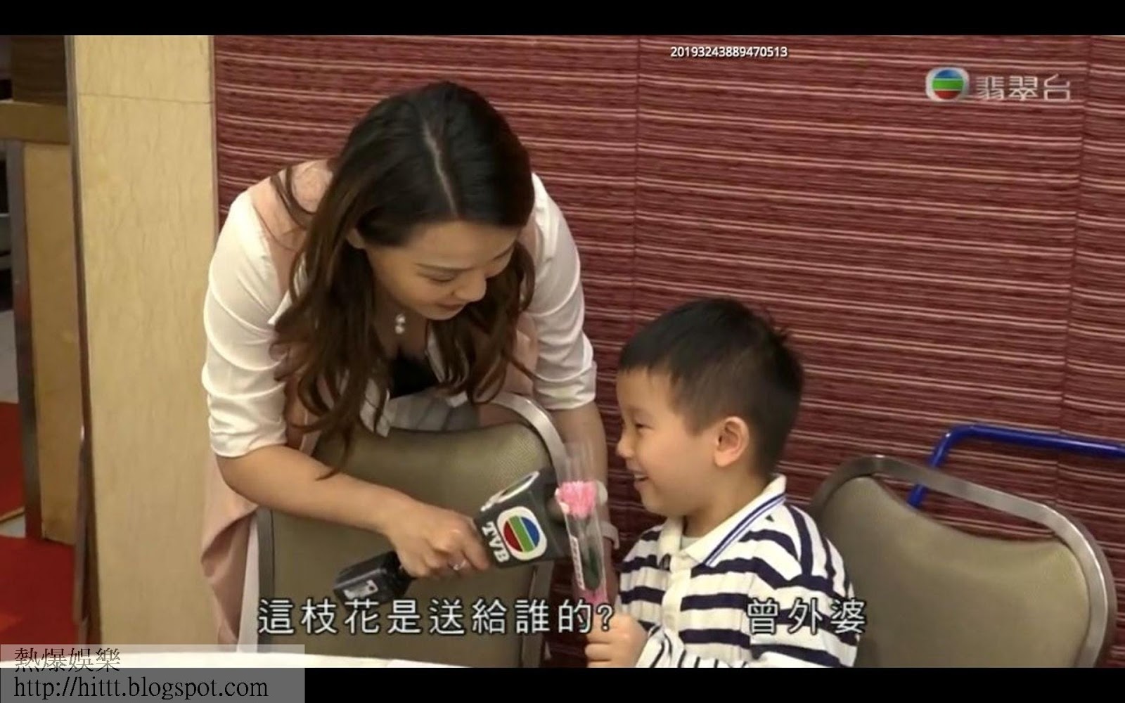 黃穎君上年母親節以一身鬆身衣服採訪小朋友時,因「烏低身」而春光乍洩,惹來不少網民抨擊,指她有傷風化,這幕鏡頭不應播出街。(電視畫面)
