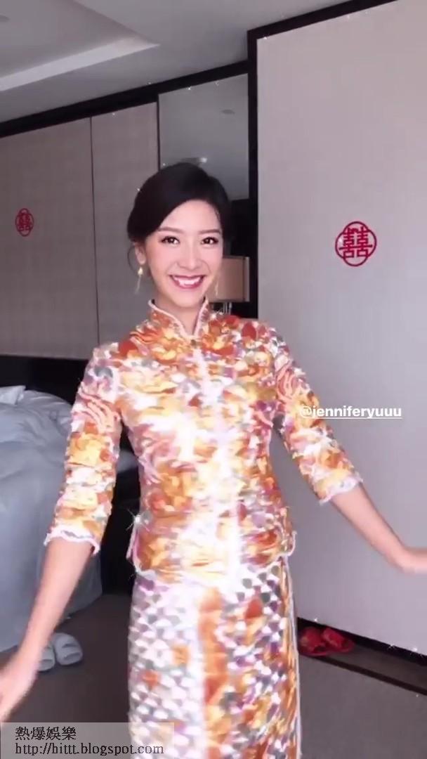問到待會花球最想交給誰,Jennifer表示:「好難揀,想佢哋個個都幸福,等陣我會用力咁掟,等佢哋用力咁爭。(玩新郎情形點?)當時我喺房,聽到佢哋玩得好盡興,啲遊戲我有份諗,最滿意係愛的宣言,尤其係佢唱咗《簡單情歌》畀我聽,佢平時好少唱歌。(畀老公幾多分?)超過100分,如果唔係都唔會嫁畀佢。(新郎咁怕醜嘅?)我就係鍾意佢咁,佢樣樣都怕怕醜醜,會叫我意見先。(造人呢?)我會好努力、好努力、好努力,有好消息會同大家講。」受訪後Jennifer即步入酒店免誤吉時,婚禮上頭、斟茶等習俗全部做足,午膳則邀請了麥子樂、Cheronna、Jessica、吳肇軒等圈中好友參加。