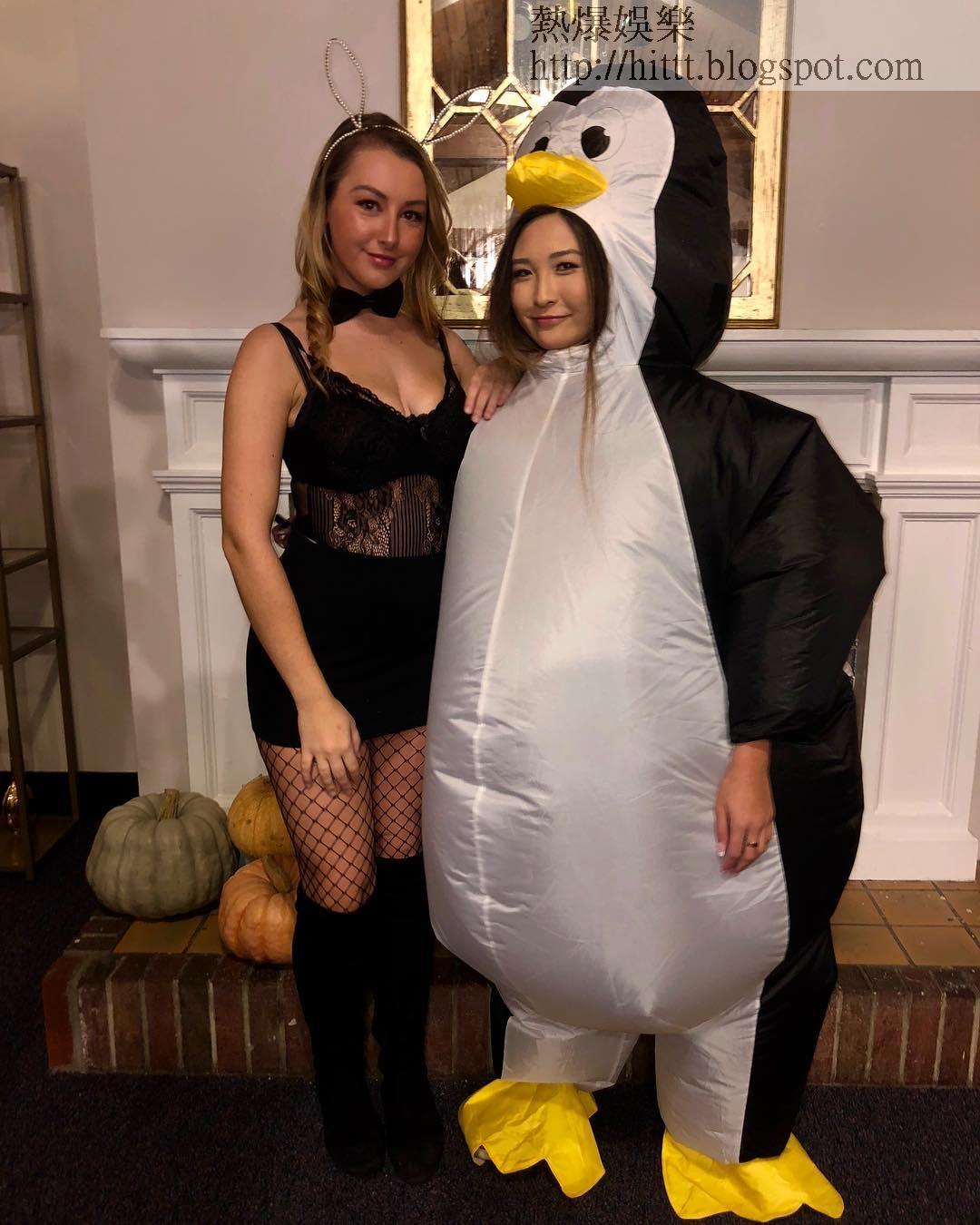 適逢10月31日萬聖節,不時低胸、短裙的胡芷彤,竟然一反常態收起性感,穿上吹脹了的企鵝裝束包得密密實實。從她上載的照片來看,雖然身旁的西洋金髮女子以Deep V豪乳、縷空、蕾絲、網襪示人,但圓碌碌的胡芷彤也相當可愛,不被比下去。