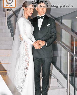 張寶兒的白色婚紗長裙看似密實,其實內有乾坤!除了大露背外,更側身開高衩,並以喱士花紋作點綴,大玩透視誘惑,性感之餘不失高貴。