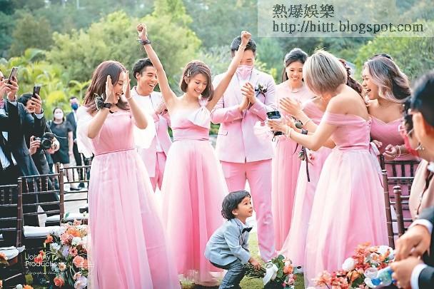 歌手鄭俊弘(Fred)與何雁詩經歷重重波折後,昨日正式成為夫妻!早前天文台預告打風,幸好天公作美,為他們送上「大賀禮」!一對新人前晚各自上頭,昨晨則在女家進行接新娘儀式,並有10男10女兄弟姊妹團助陣,其中陳瀅、蔡思貝、Cheronna、陳嘉寶、賴慰玲穿粉紅色姊妹裙,組成「索爆姊妹團」,張子丰則反串做姊妹,兄弟團就有張頴康。