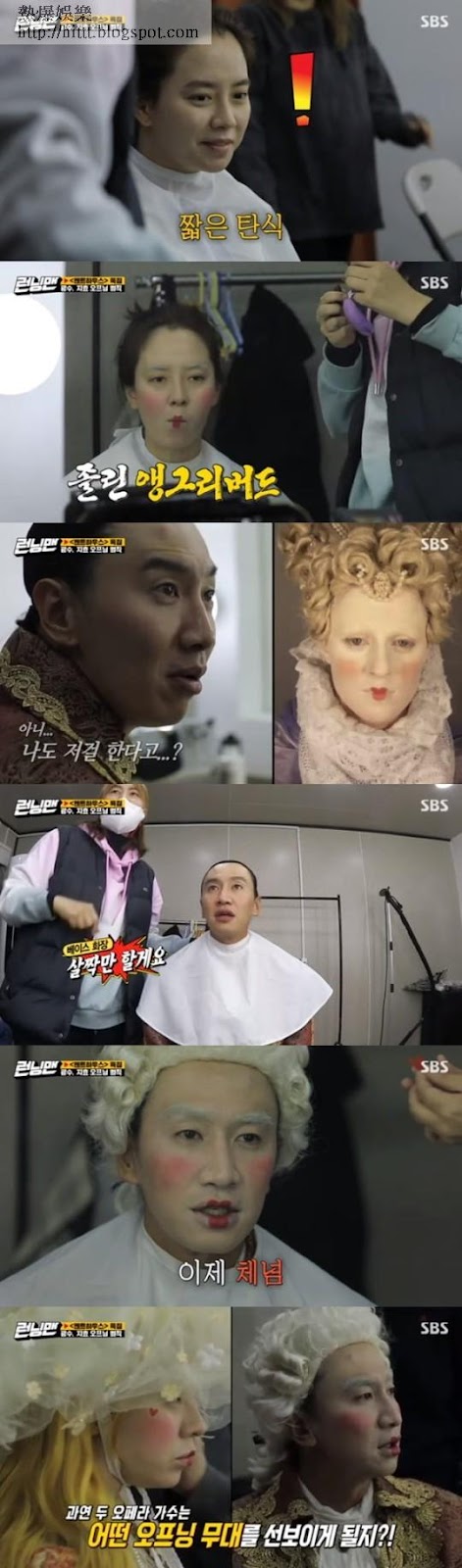 韓國綜藝節目《Running Man》(RM)的宋智孝,跟隊友李光洙於早前的濟州島特輯中因為任務失敗而要接受懲罰,節目組於今日就公開二人cosplay歌劇歌手的「受罰場面」。