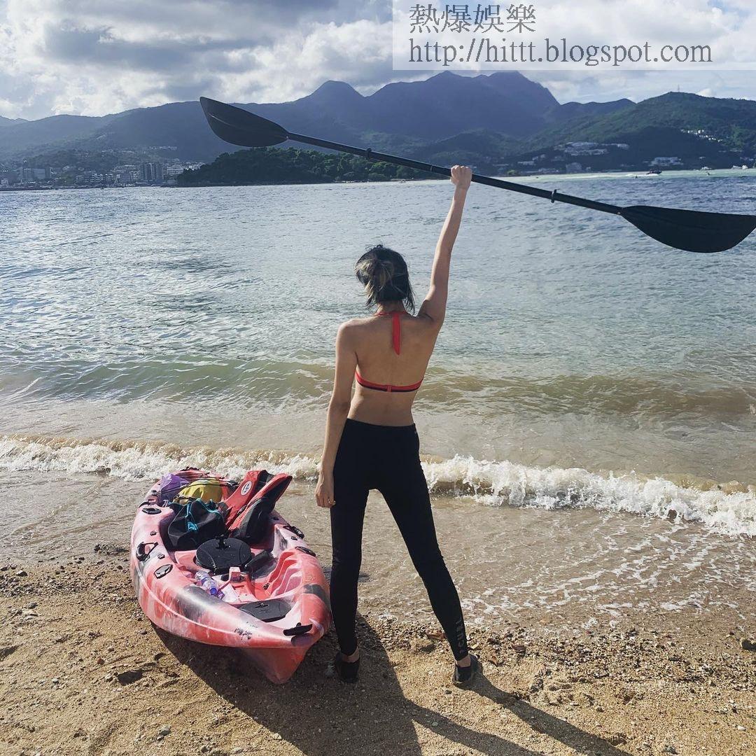 曾淑雅為拍攝節目到蚺蛇尖行山,上到山頂後,可以見到大灣及鹹田灣的景色。(Instagram@jumbotsang)