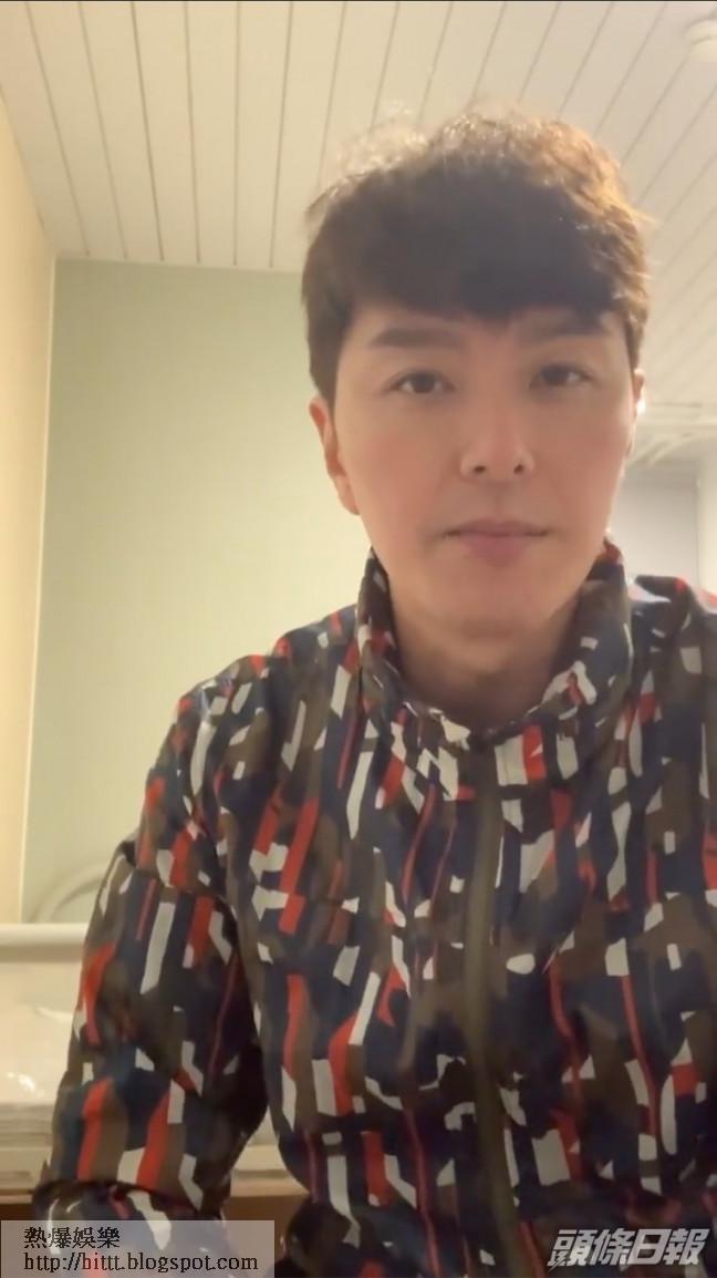 片中他神態自若,喺一張白色鐵牀前笑笑口拍片說:「Hello 大家好,首先要多謝我啲兄弟姊妹、朋友、同事、記者朋友,關心我嘅Message。我好好,大家唔需要擔心我。我同大家講講我嘅情況先,我𠵱家喺隔離中心隔離緊。事緣18號,我拍攝我嘅飲食節目,尋晚9點多收到衛生署打電話嚟,話當日有個經理在場,而呢位經理確診咗,而我成為密切接觸者。所以根據法例我需要隔離,咁所以我嚟咗呢度,但係我做咗測試,初步測試係呈陰性,negative,所以大家可以放心。我喺呢度隔離完之後就會返出去,大家唔需要擔心我。希望大家可以捱過呢個疫情,呢個疫情真係好利害,希望大家可以撐得住。好唔同大家講咁多,我𠵱家要去抹地」
