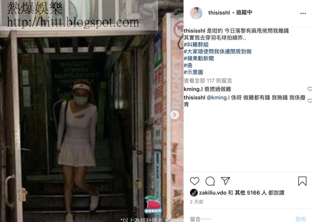 《蘋果日報》亦拍到一名少女穿著全副運動裝離開建興大廈,事後嗰名少女仲喺 IG 自爆嗰個少女就係佢,佢去建興大廈穿線羽毛球拍線。