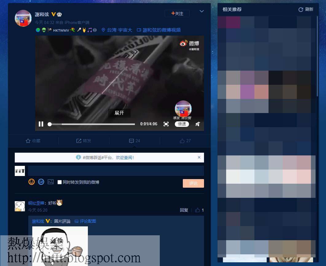 《X你娘雞X》除了歌詞充滿粗口外,MV中,介紹歌名時更一度出現林鄭樣子,同時畫面不停穿插很多去年反修例運動時的警察短片,以及寫着敏感口號的鏡頭。歌曲題材及MV畫面極度敏感,但今日凌晨謝和弦卻順利在微博開心分享該曲,而他在留言中除了有地球、外星人及旗幟emoji外,更寫着「HKTWMV」(意旨香港台灣 MV)。不過,當一眾小粉紅發現謝和弦可成功在微博分享該MV後,玻璃心即時碎裂,留言大鬧謝和弦是「垃圾」、「台獨狗」,但亦有少數網民讚歌曲好聽,留言:「一起加油」。《X你娘雞X》雖然成功在微博出現約11小時後,卻因被網民舉報被删走。