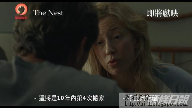 製作團隊在片中探討成功的代價,人性醜惡、野心、貪婪和虛偽,終令人精神崩潰,家庭撕裂。主題貼地真實,在高壓城市生活的觀眾必定深感共鳴。《The Nest》將於12月在港上映。