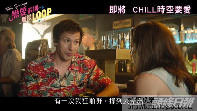 入圍辛丹斯電影節(Sundance Film Festival)的愛情喜劇《Palm Springs:戀愛假期無限LOOP》,由金球影帝安迪森堡(Andy Samberg)及《黑鏡》姬絲汀美莉奧蒂(Cristin Milioti)主演。吊兒郎當的大男孩拉奧(安迪森堡飾)喺一個婚宴遇見伴娘莎娜(姬絲汀美莉奧蒂飾),二人一拍即合打得火熱,點知拉奧卻突然中箭。被獵人誤以為是小動物的兩人匿入山窿保命卻遇上一道強光,第二朝擘大眼,時間竟然回到婚宴當天早上!