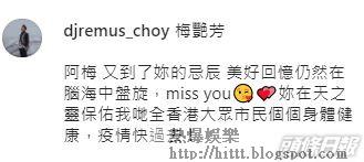 蔡一傑亦在IG上載早年為師傅梅艷芳伴舞的演出片段,留言:「阿梅,又到了妳的忌辰,美好回憶仍然在腦海中盤旋,miss you。妳在天之靈保佑我哋全香港大眾市民個個身體健康,疫情快過去!」而蔡一智就在社交網貼出花花相懷念梅姐。