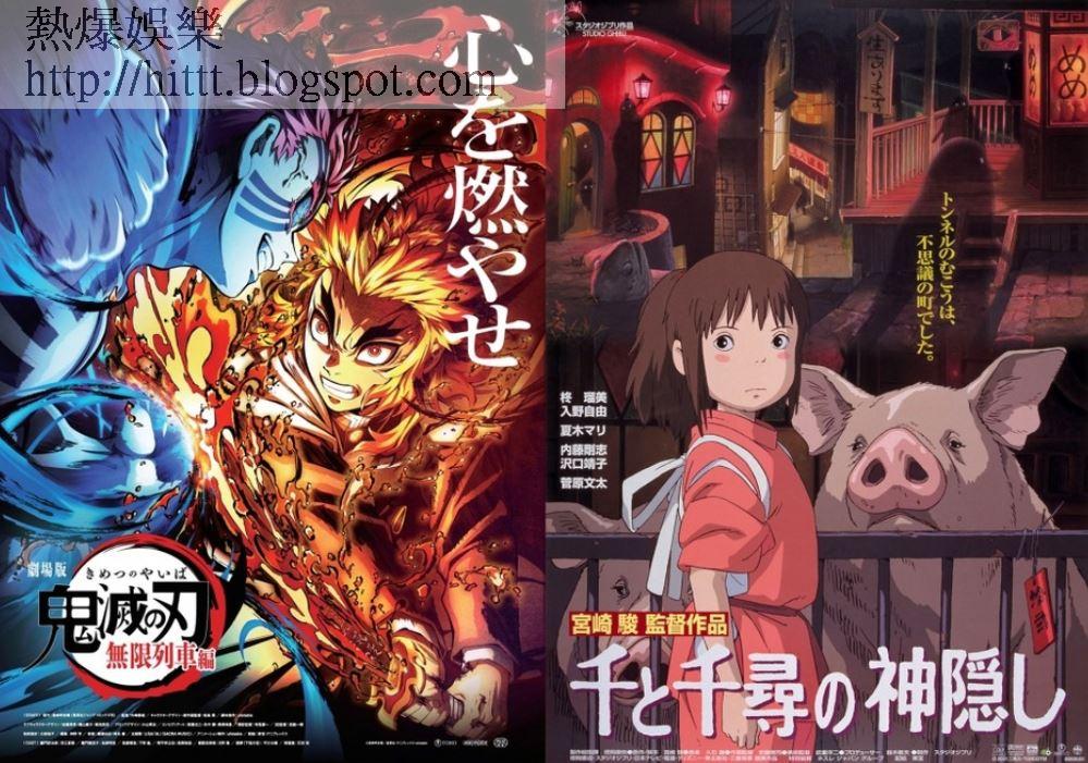 《千與千尋》與《鬼滅之刃劇場版 無限列車篇》兩片同屬東寶發行,更是能夠突破300億日圓的日本電影,近日網民貼出兩片的二次創作圖贈慶一番。東寶今日亦公佈消息,由於《千與千尋》今年在疫情下再於當地戲院重映,並與吉卜力出品的《幽靈公主》、《地海傳說》及《風之谷》於6月至8月期間上映,《千與千尋》收約8.8億日圓(約6千600萬港元),令該片的票房數字改寫成316.8億日圓(約23.6億港元),被《鬼滅》破紀錄前罕有地更新總票房收入。另外,東寶今日開記者會預告明年上映作品,公司高層市川南被問到《鬼滅之刃劇場版》是否會籌備炮製續集、第二套電影又能否在2022年上畫?市川南表示要視乎ufota、集英社、Aniplex三方面配合,東寶當然亦希望能再擔任發行角色。