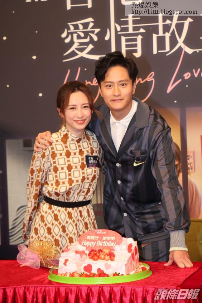 龔嘉欣、羅天宇及謝東閔等今日出席TVB劇《香港愛情故事》記者會,席間嘉欣和天宇重演太空艙甜蜜一幕,天宇又手執結他自彈自唱冧對方,其後,眾演員為本月初牛一的嘉欣和謝東閔補祝生日。