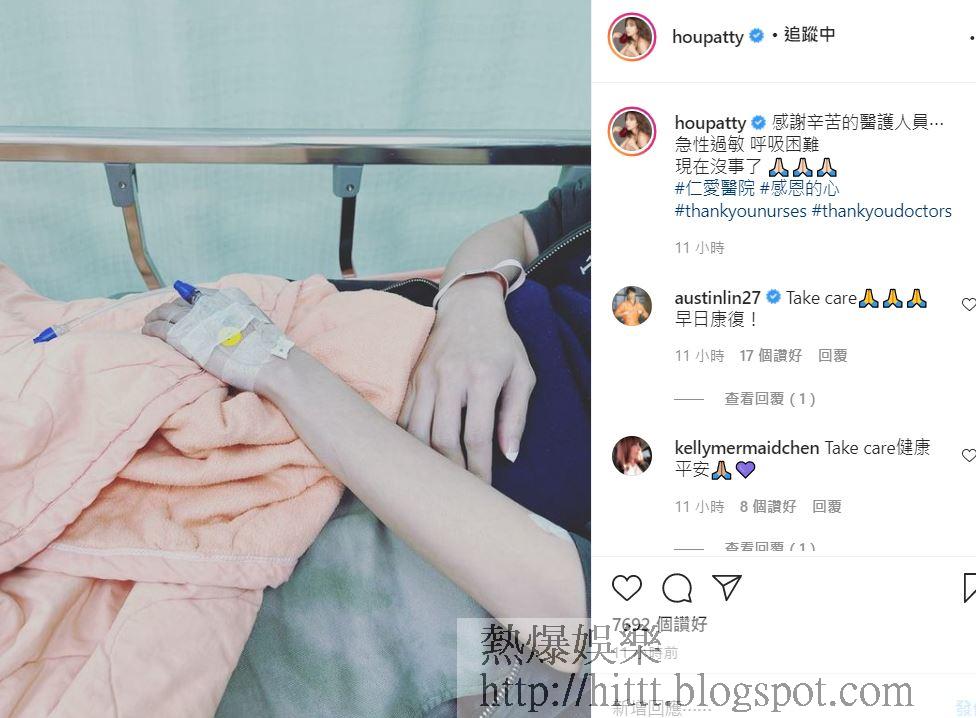 侯佩岑生日急性過敏送院吊鹽水。(網上圖片)