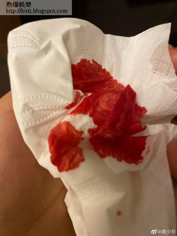 藝人蔡少芬(Ada)不時都喺社交網同老公張晉要花槍,但今日凌晨4點30,佢突然上載咗張滿紙鮮血嘅相,留言:「你試過睡覺流鼻血嗎?。。。[允悲][允悲][允悲] 」